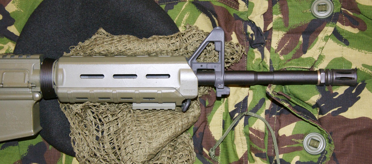 Below the foregrip, I’ve installed a small RIS rail for a flashlight. Once or twice I’ve done an evening skirmish, and while even a red light announces your presence to the enemy, it does help you spot rabbit holes, which can be a greater threat to your real-life health and welfare, not to mention your dignity.
