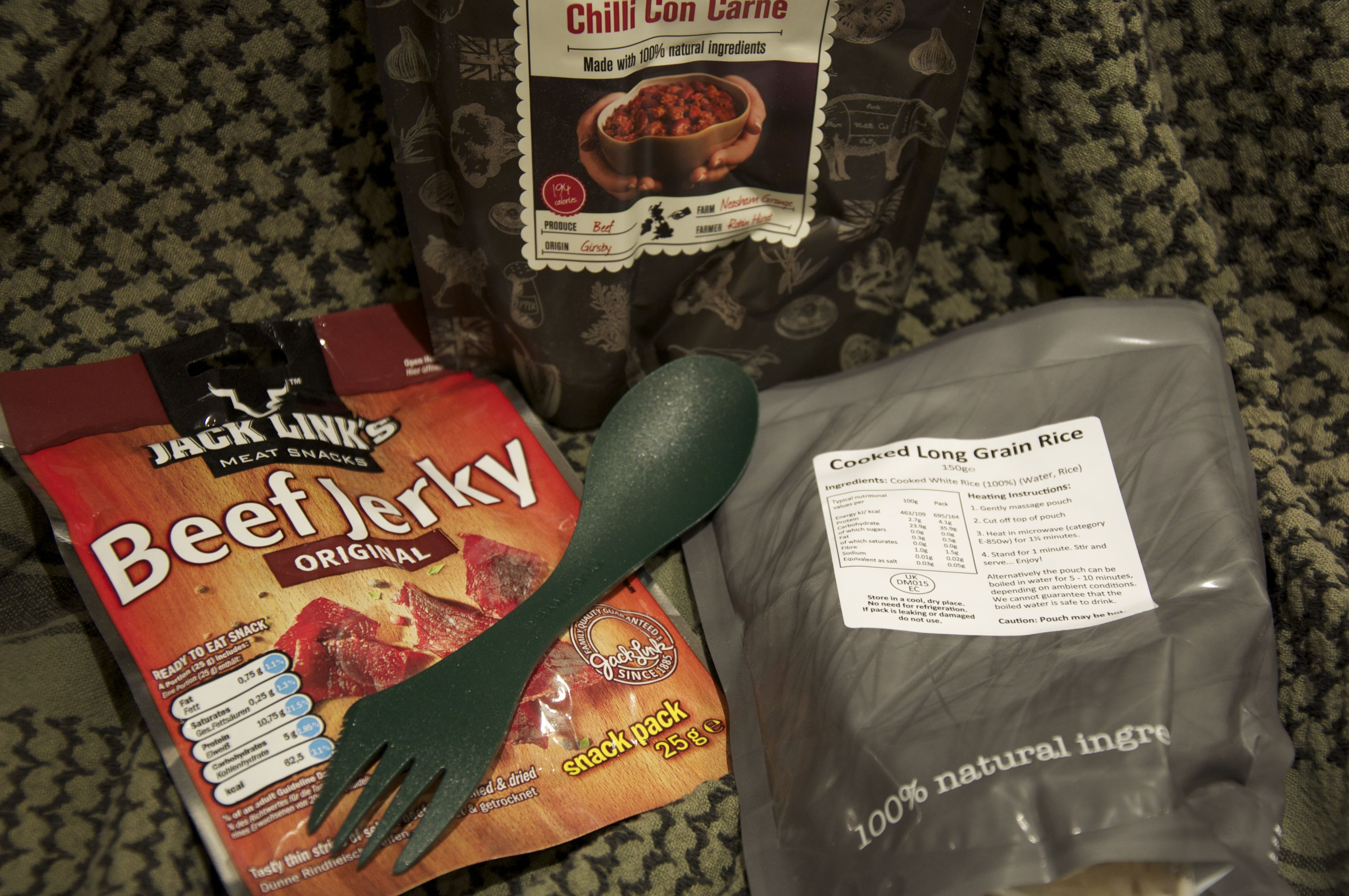 Food is important to me. So dried rations just won’t cut it. So I plump for pouched ‘wet’ boil-in-the-bag meals from an irritatingly twee and self-righteous organic mail-order company called www.lookwhatwefound.co.uk. I’ll heat them in my crusader 58-pattern mug on a lightweight propane burner. That’s the only cooking vessel I’ll carry. I’ll eat the meals straight from the pack.
