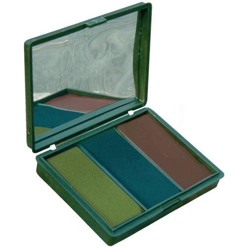I use a three-colour compact. It has a mirror in it, which is handy, but it’s even better if you can get a fellow player to help apply your camo. Be sure to return the favour. In the military they call it the ‘buddy’ system. In some ‘alternative’ clubs on a Saturday night, they call it something else, but I digress.