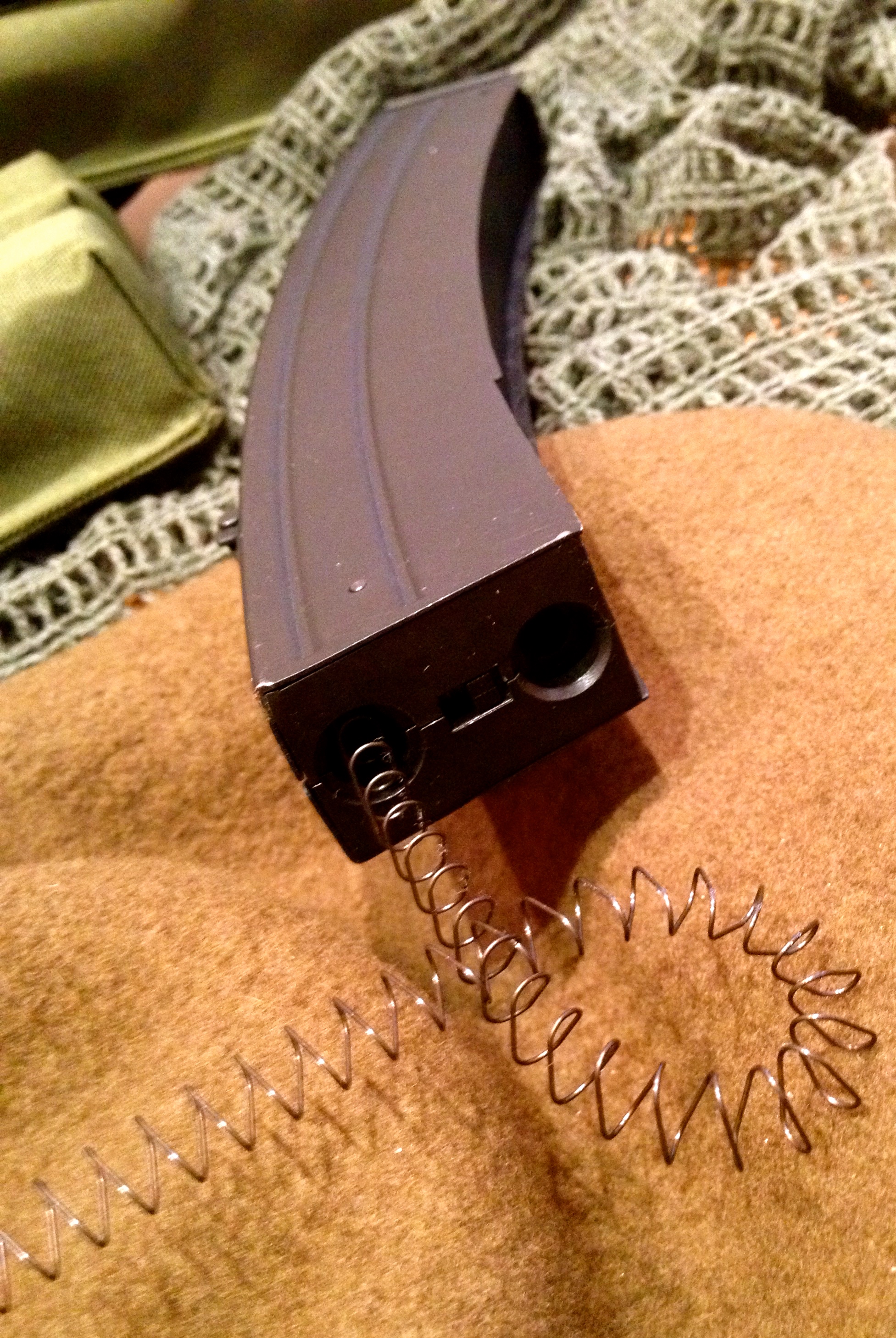 That is, until catastrophe struck. Shortly into the second game, I was executing one of my high-speed tactical reloads (I have the procedure down to under five minutes on a good day) when the spring flew out of the end of the withdrawn magazine. Exactly the same thing happened with the next.